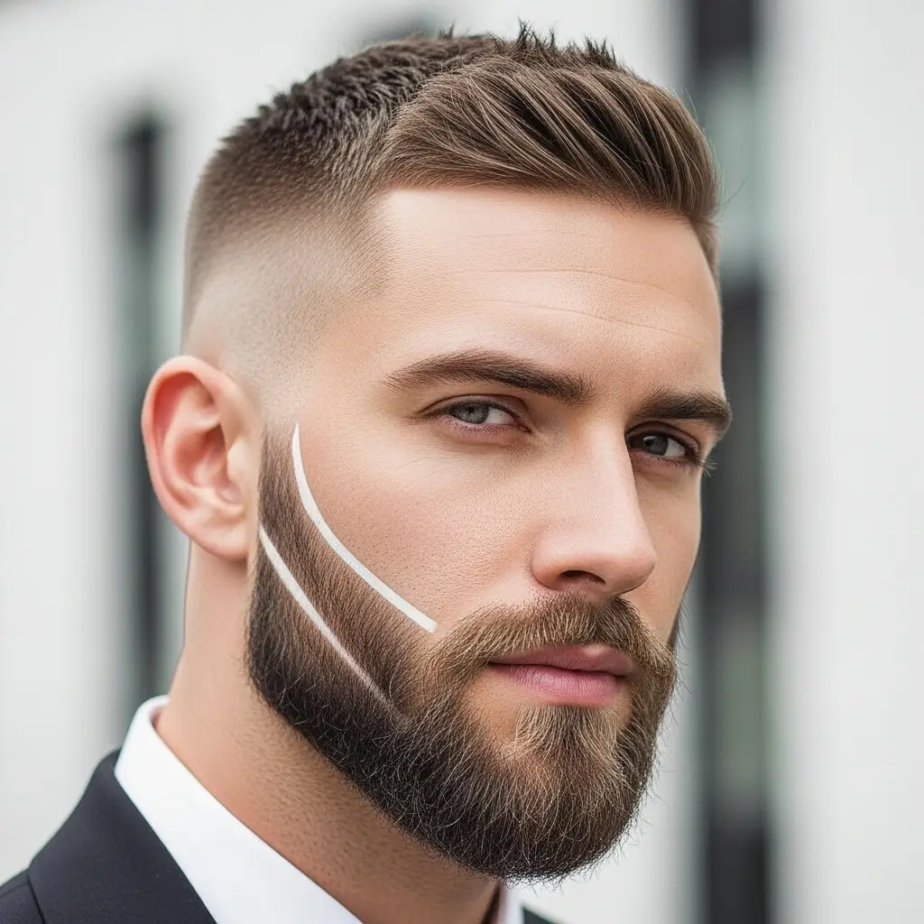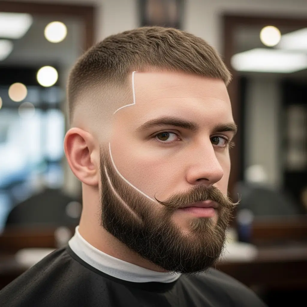A buzzcut and designer beard pairing showcases creativity and grooming mastery. The beard is carefully shaped to complement facial structure, while the simple buzzcut keeps things neat. This style reflects confidence and control ideal for men who treat grooming as an art form and love standing out.