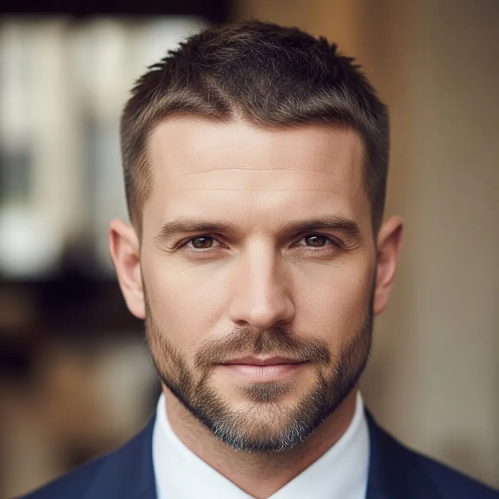 Pairing a buzzcut with a stubble beard creates a relaxed, effortlessly cool vibe. This low-maintenance look adds texture and contrast without going overboard. Perfect for men with strong jawlines, it highlights facial definition while maintaining a clean, approachable appearance that works equally well in professional and casual settings.