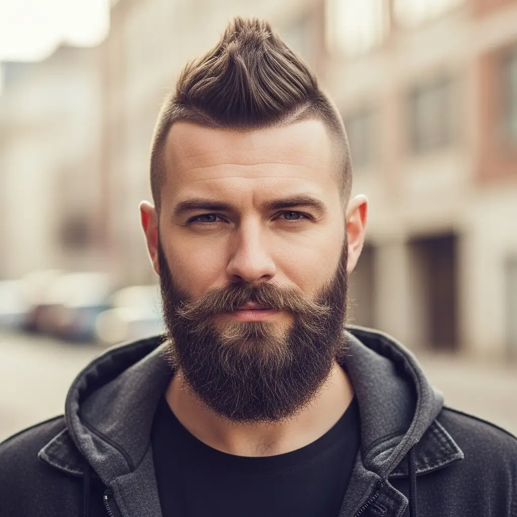 Pairing a spiked buzzcut and full beard gives an edgy, rebellious energy. The spiked texture adds height and attitude, while the beard keeps things grounded and masculine. This combo suits younger men or anyone who enjoys experimenting with styles that feel bold, confident, and unapologetically unique.