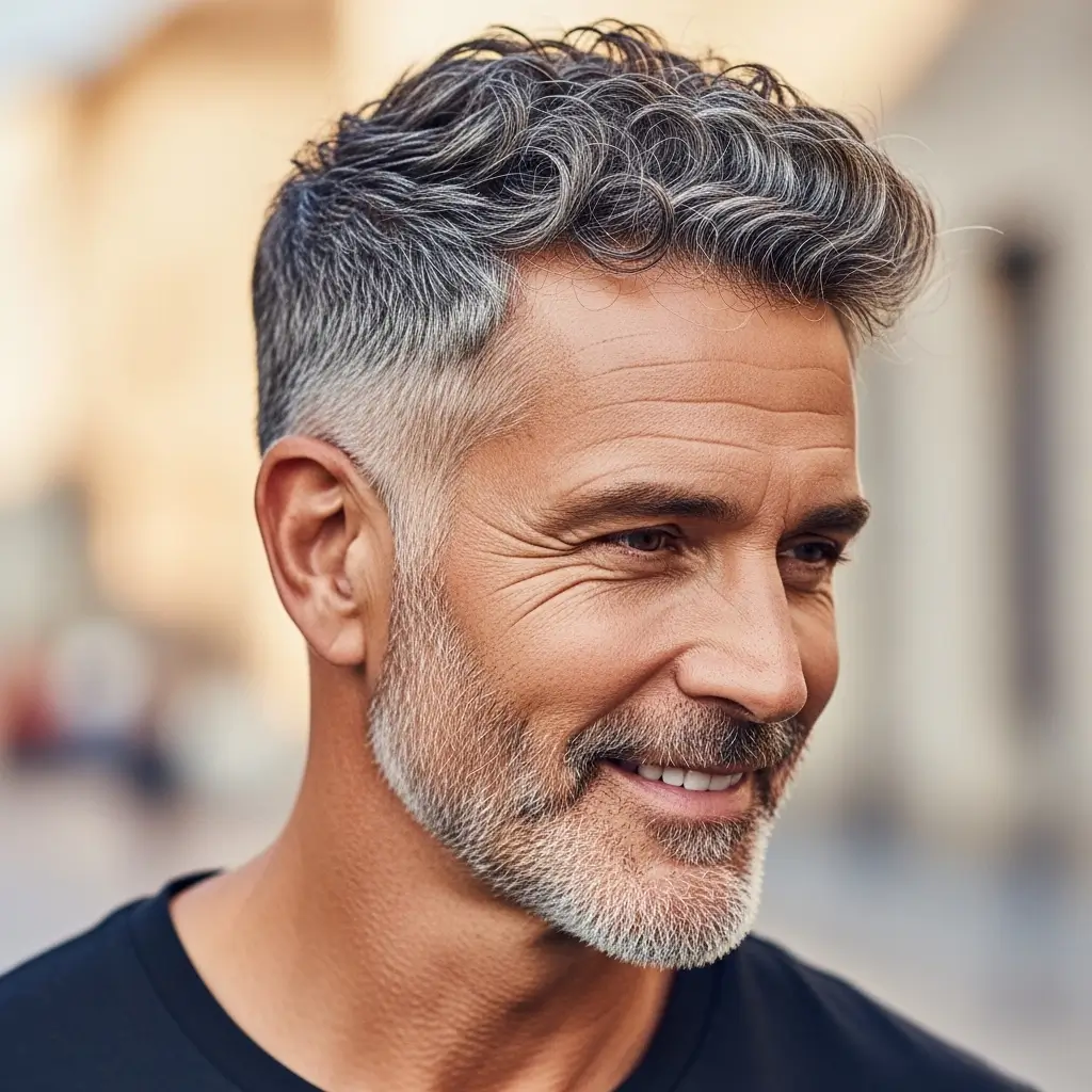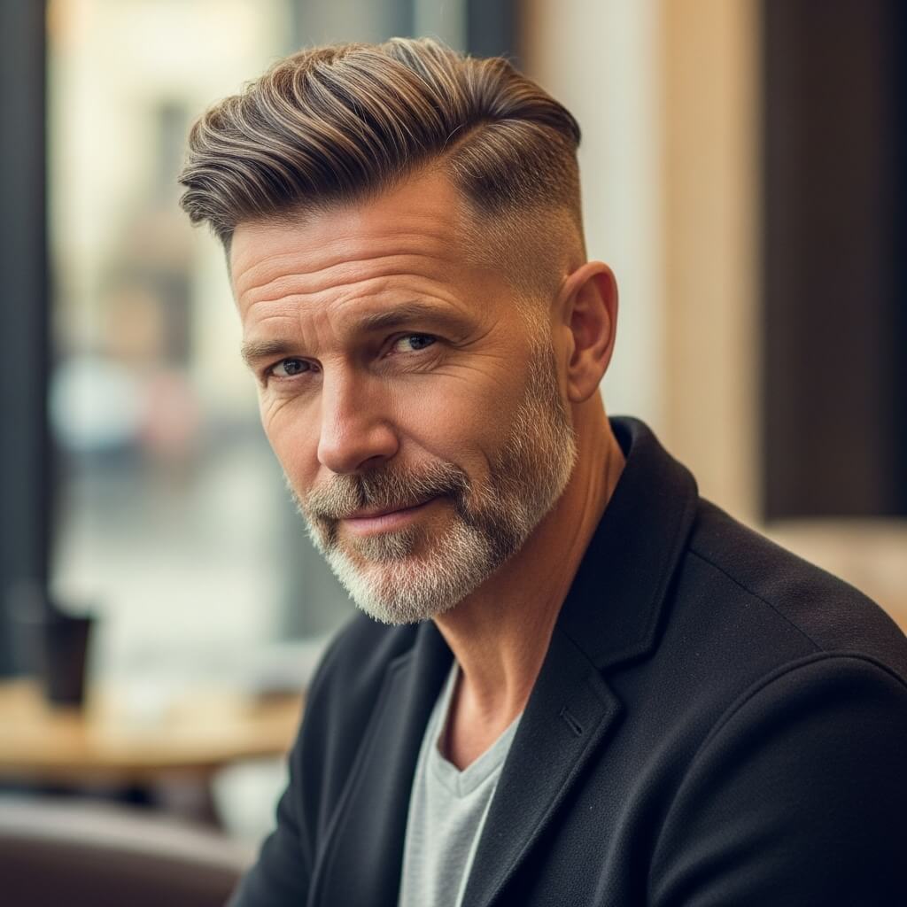 Pairing a low fade with a neatly trimmed beard creates a distinguished yet fresh appearance. This look frames the face perfectly and brings a modern twist to traditional grooming. It’s among the most attractive hairstyles for men over 60, emphasizing masculinity and sophistication with minimal effort.