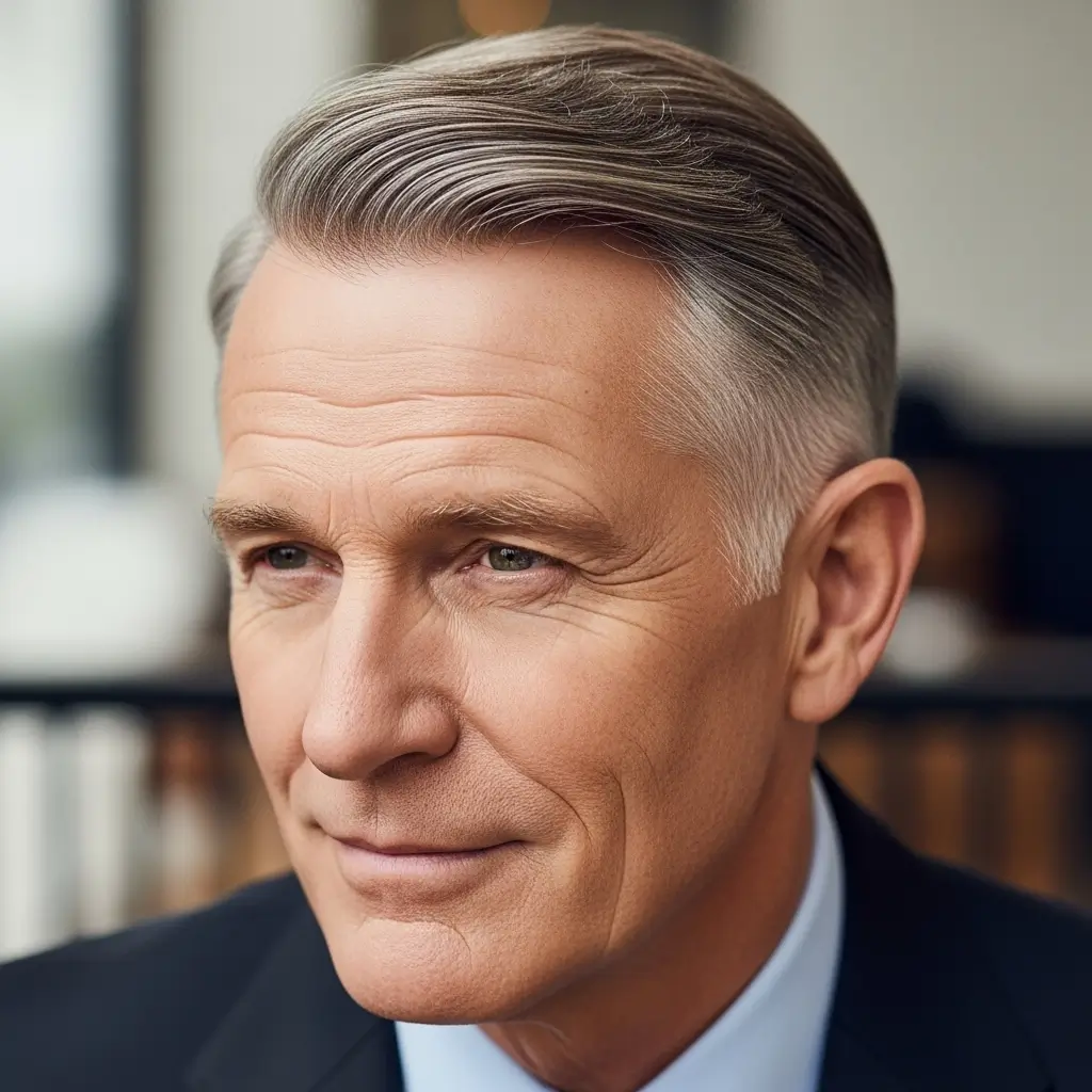 Refined yet modern, the Ivy League cut combines the best of business and casual style. It’s slightly longer than a crew cut, allowing a subtle side part for extra polish. Among popular hairstyles for men over 60, this cut highlights sophistication and ensures you look effortlessly youthful and professional.
