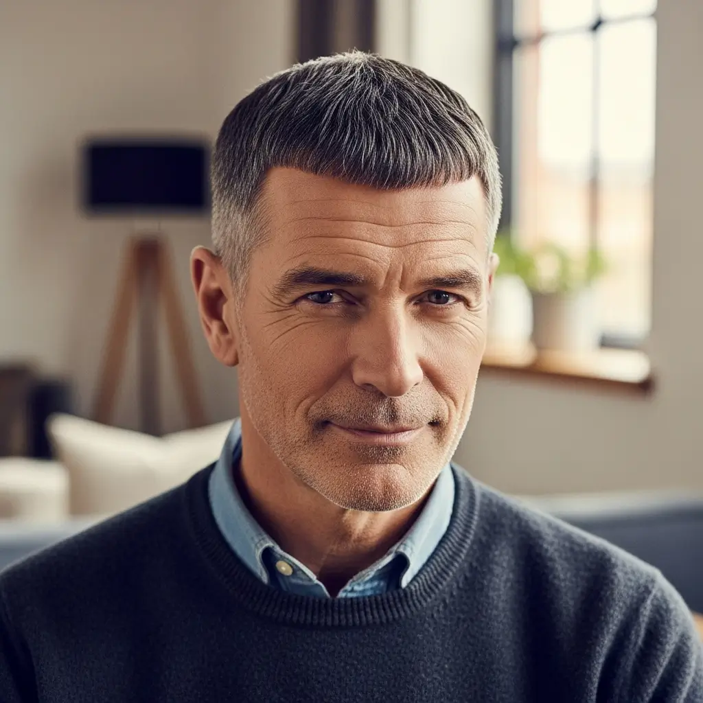 The buzz cut is a timeless, easy-to-maintain hairstyle that radiates confidence and masculinity. Perfect for men who prefer minimal grooming, this style highlights facial features and gives a clean, bold appearance. It’s one of the most practical and sharp hairstyles for men over 60 who value simplicity and sophistication.