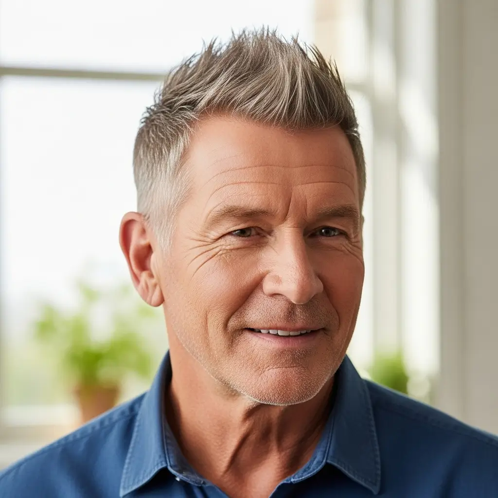 A short spiky hairstyle adds texture and vibrancy to mature hair. It’s fun, youthful, and surprisingly easy to manage. With light styling gel, you can create a lifted look that feels energetic. This trendy option stands out among hairstyles for men over 60, reflecting modern style and personality.