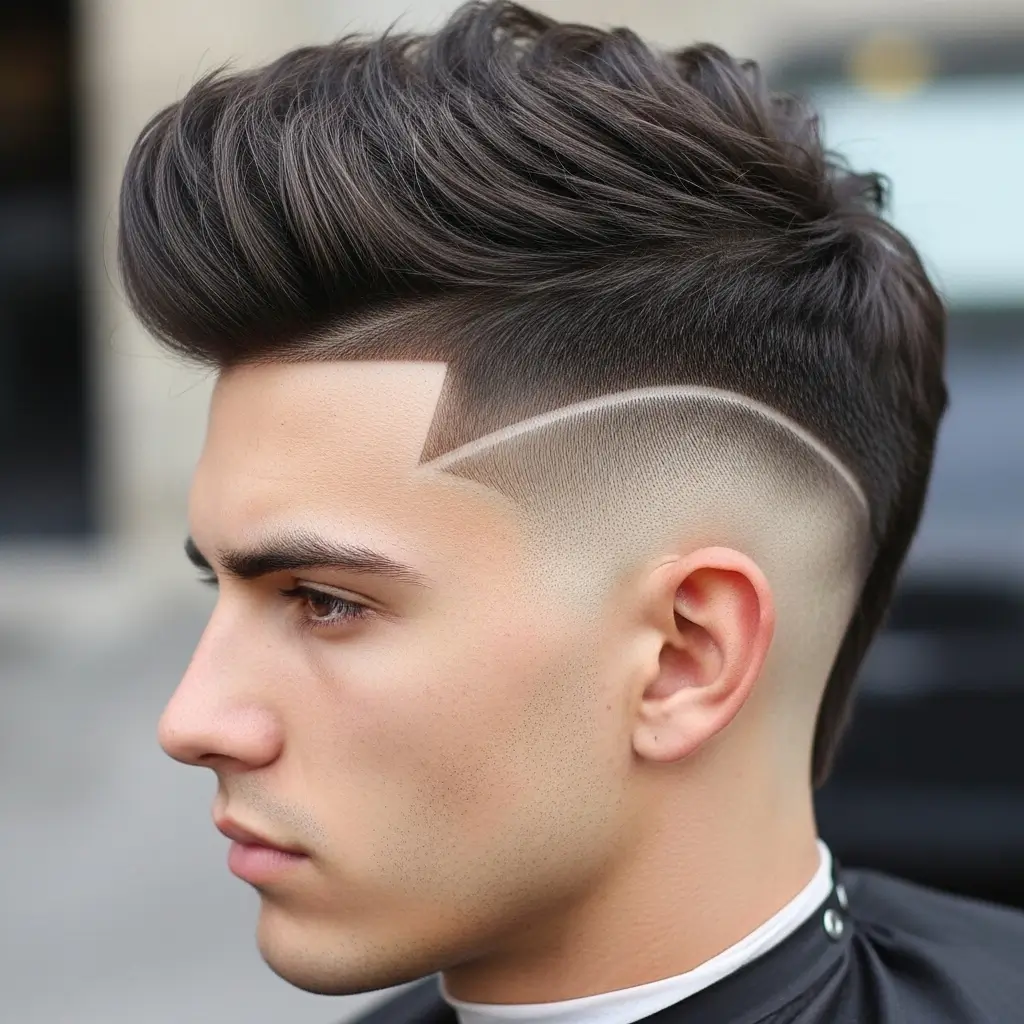 This modern haircut combines medium-length hair on top with faded sides for a bold statement. The layered top adds texture and volume, while the fade keeps the look sharp. It’s perfect for men who want a stylish, edgy appearance with effortless maintenance.