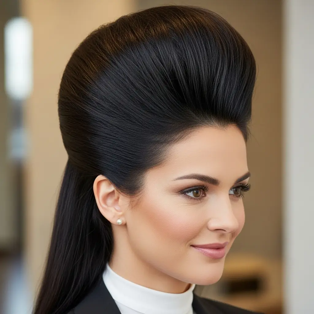 Brushed up hair creates height and sophistication, lifting straight hair from the forehead upward. Using styling products enhances volume while keeping hair sleek and structured. It’s a versatile choice for formal and casual occasions, giving a confident and refined look without being overly complicated.