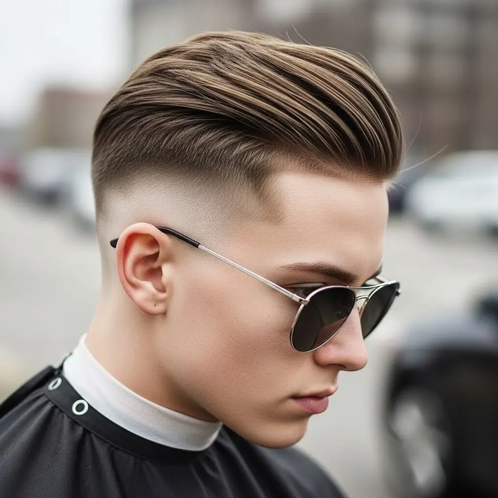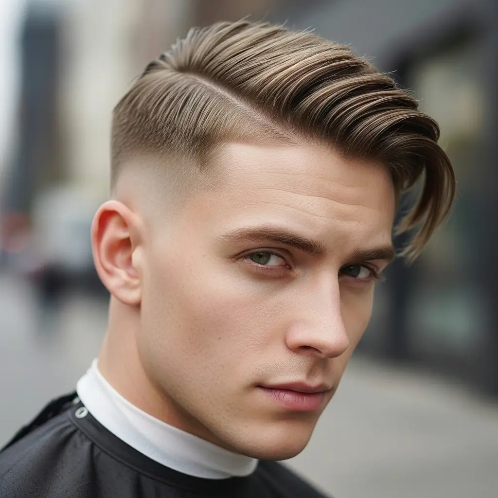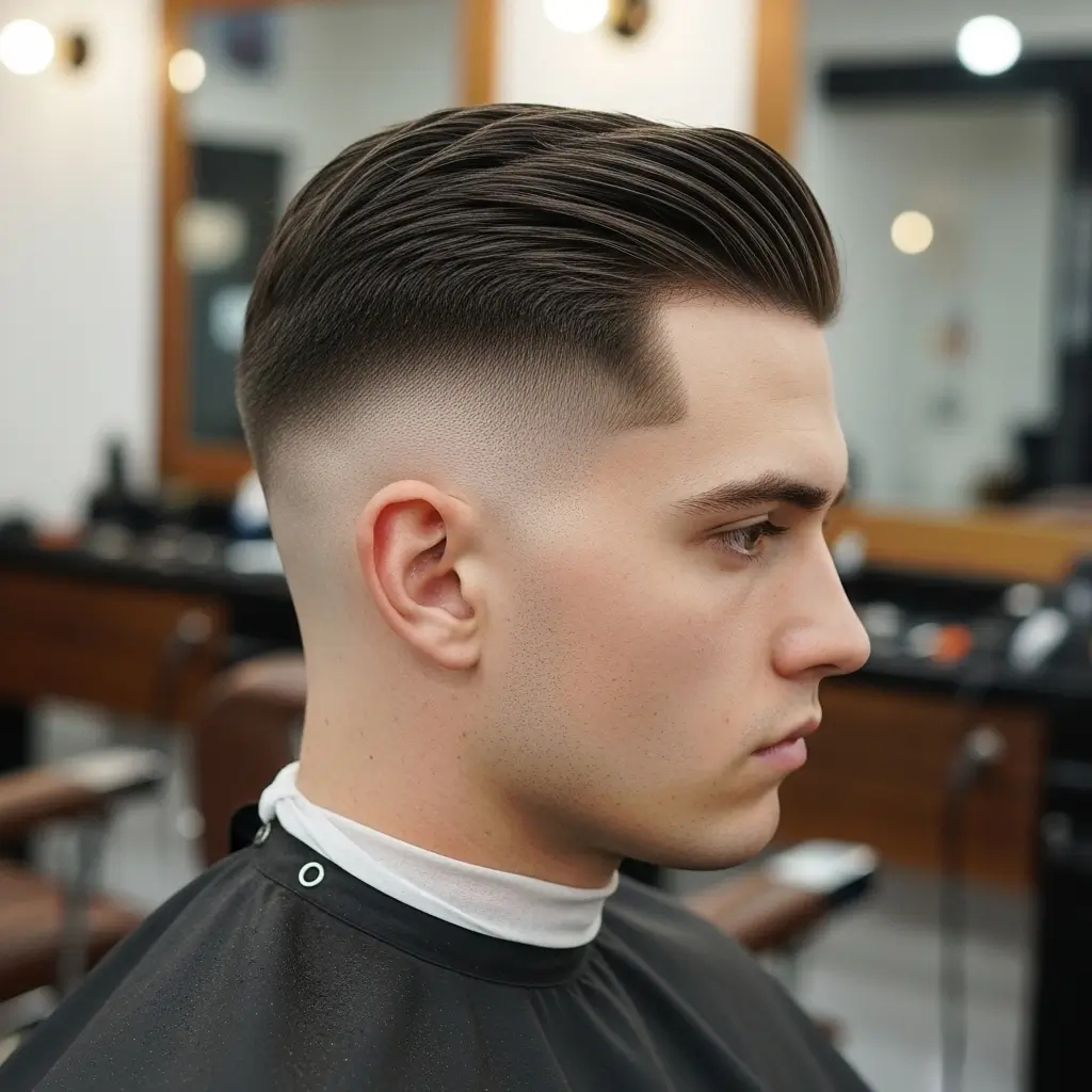 A low fade with longer top hair gives straight hair a contemporary edge. The gradual shortening on the sides enhances facial structure while allowing styling versatility on top. This haircut is clean, trendy, and perfect for men who want an easy-to-maintain look without compromising style.