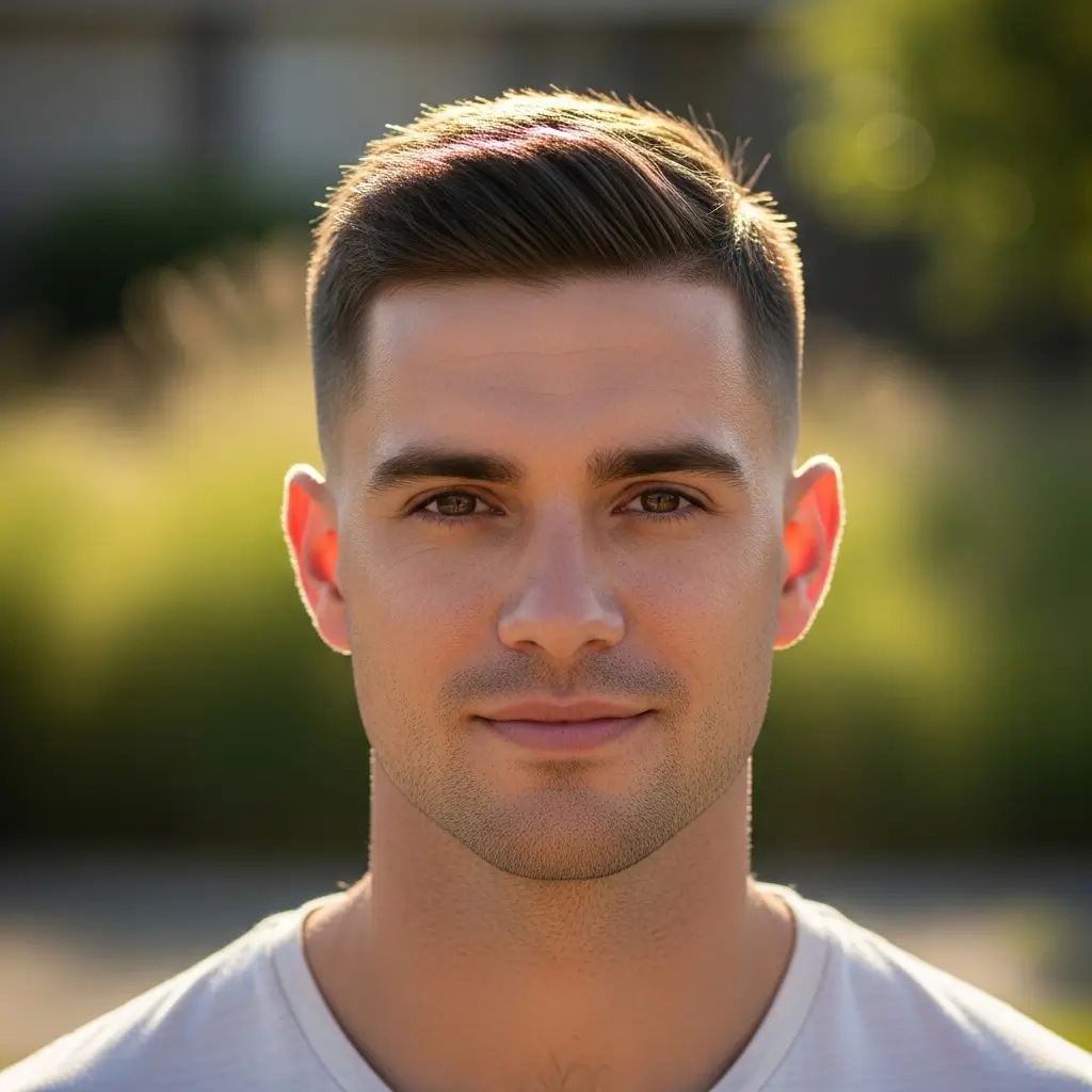 The crew cut is a short, neat hairstyle that’s ideal for straight hair. Its simplicity makes it low-maintenance while still offering a masculine and professional appearance. It’s particularly great for active men who prefer an easy-to-style haircut without sacrificing sharpness or style.