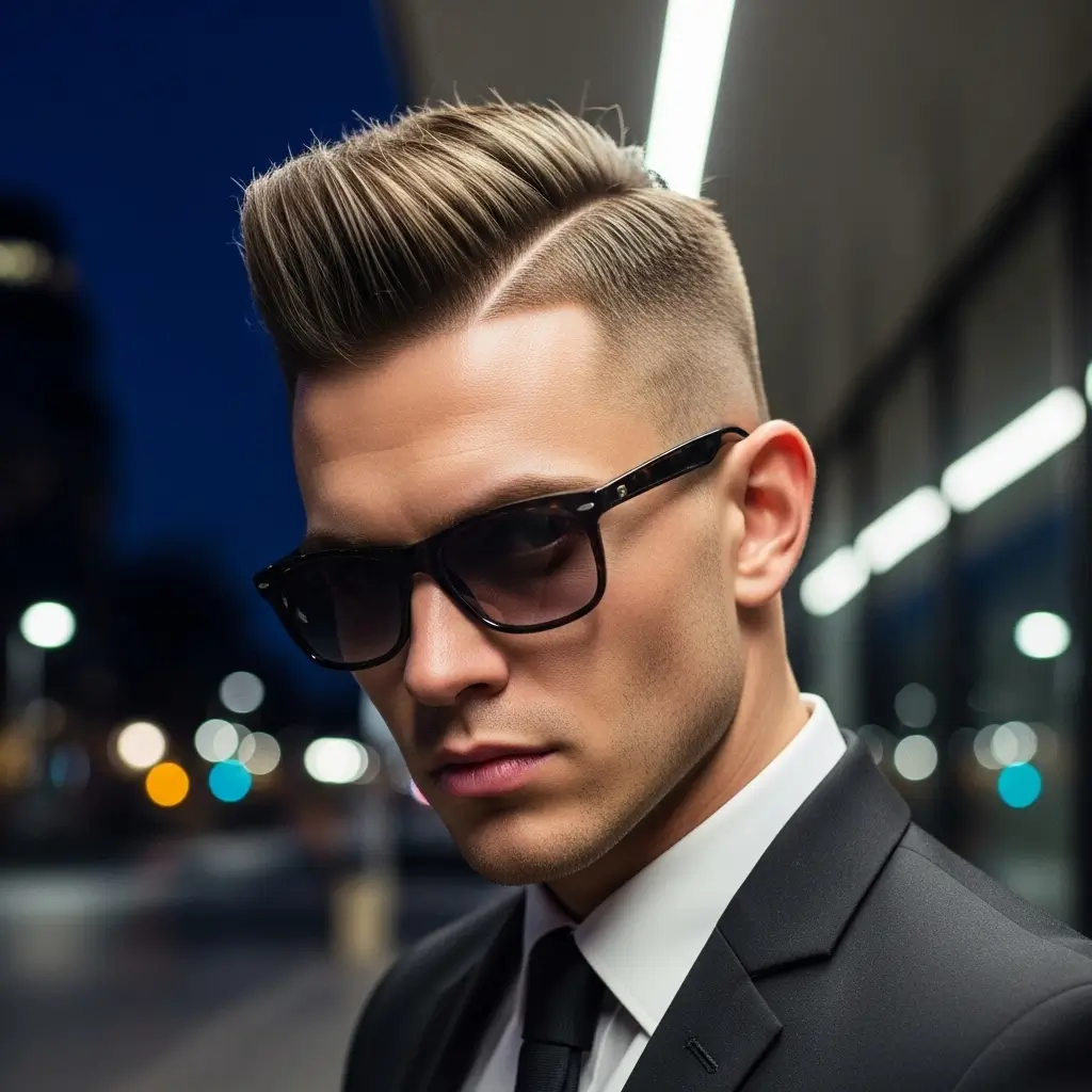 The quiff combines volume, height, and style, making it perfect for straight hair. Hair is longer on top and styled upward and backward, adding personality to your look. It’s versatile for both casual and formal settings, and a bit of styling product ensures it stays flawless all day.
