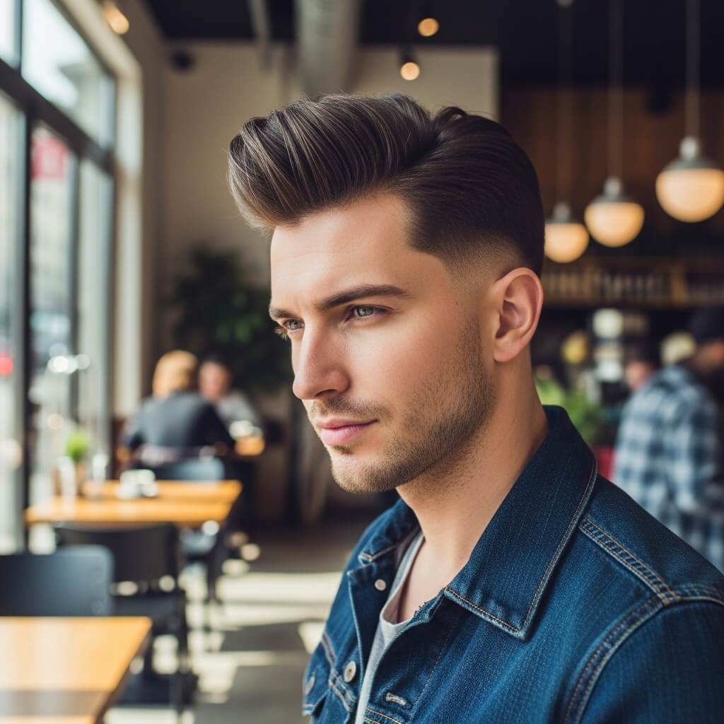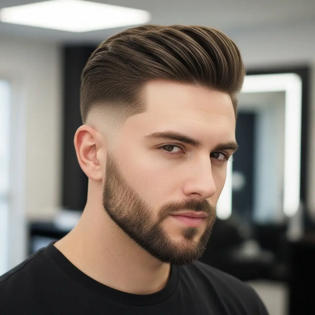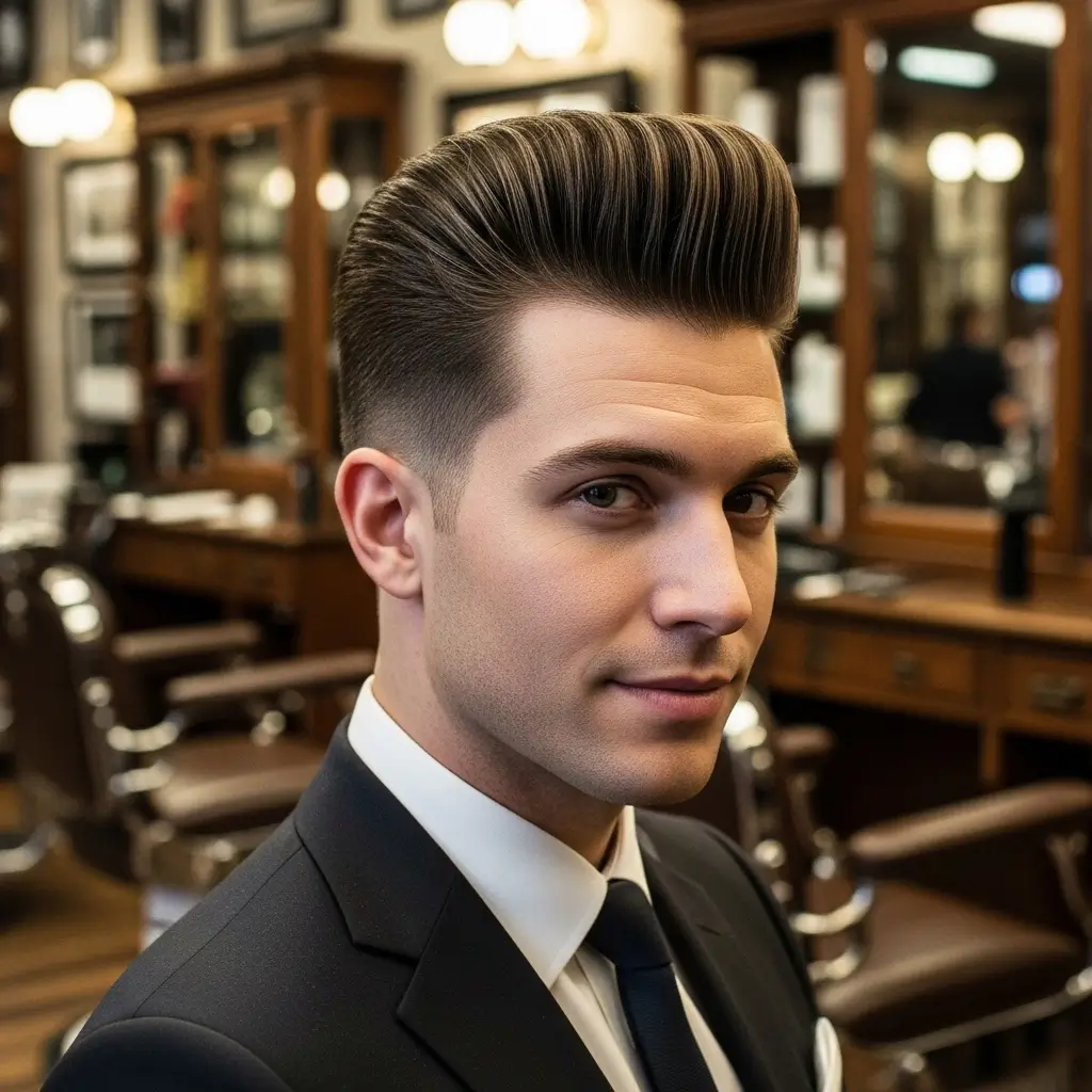 The pompadour is a classic, stylish haircut where hair is longer on top and voluminous while sides are trimmed short. Straight hair works exceptionally well for creating the sleek lift needed. This statement hairstyle adds elegance and confidence, making it ideal for men who love attention to detail.