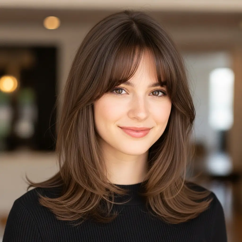 Curtain bangs with straight hair frame the face beautifully and add soft, stylish flair. This mid-length haircut creates movement and highlights natural texture. It’s perfect for casual and semi-formal styles, offering a youthful, modern appearance while keeping straight hair manageable and fashion-forward.