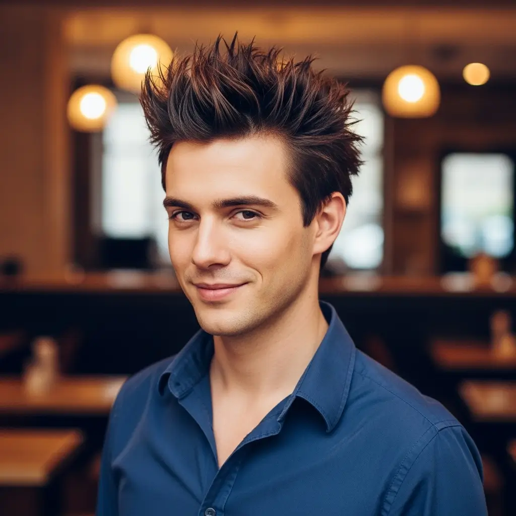 Spiky hairstyles give straight hair texture and playful energy. Using a small amount of styling gel, hair is lifted at the tips for a dynamic, youthful appearance. This cut works well for casual looks, social events, or creative settings, allowing men to showcase personality with minimal effort.