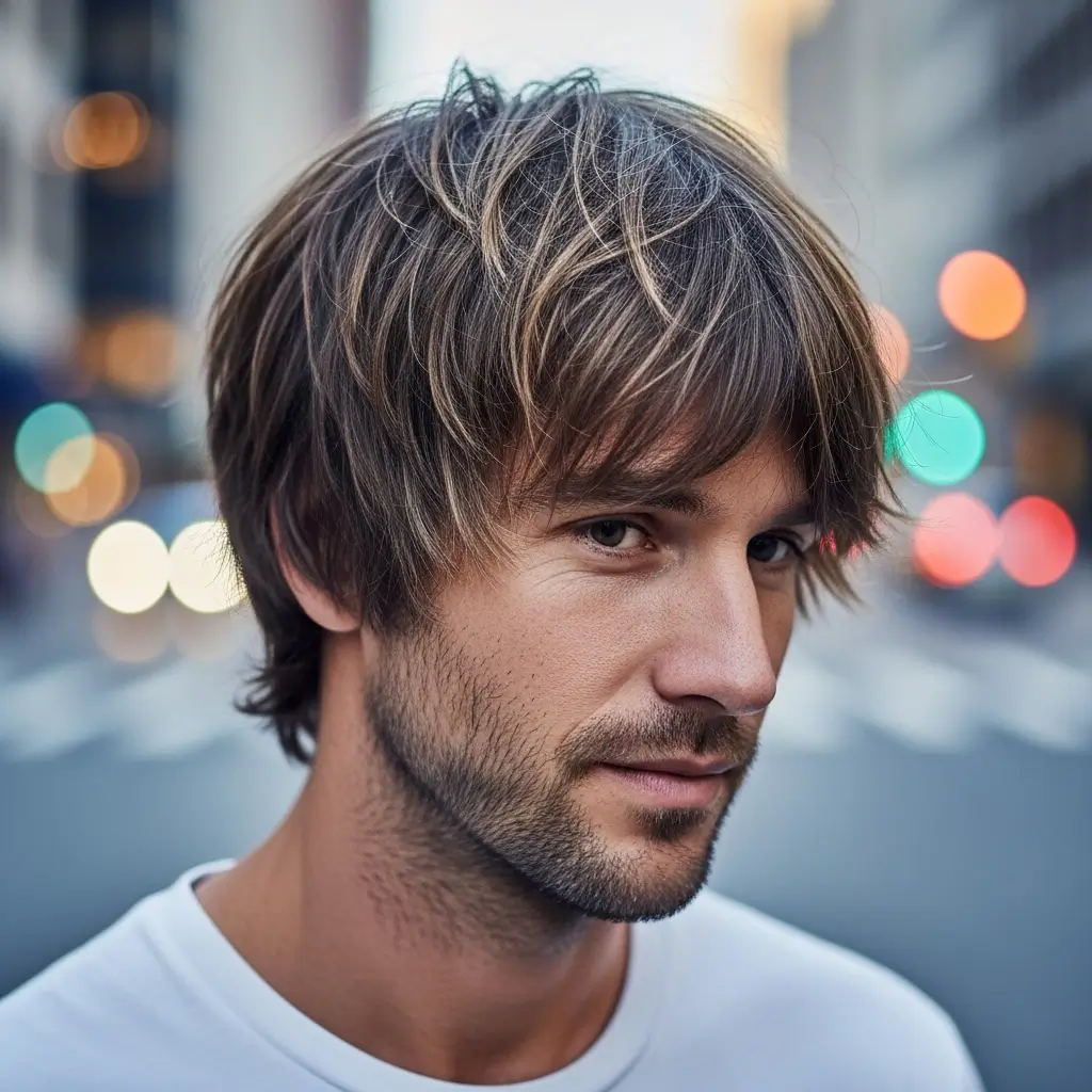 The shaggy cut adds layers and movement to straight hair for a relaxed, casual vibe. It’s ideal for men who prefer effortless style with a slightly messy yet trendy appearance. The layered texture enhances volume and gives a carefree, contemporary look that works in everyday settings.